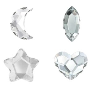 Je kunt kiezen uit diverse vormen en maten: Diamantje rond (1 mm / 1.4 mm / 1.8 mm), Ster (4 mm), Hart (3 mm), Cat eye (6 x 2 mm), Maan (6 x 4 mm)